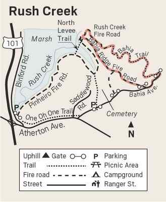 of the tidal wetland and loops back through the blue oaks on the Bahia Ridge
