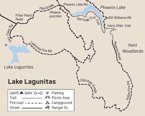 At the signed junction where Eldridge Grade goes right to continue up toward East Peak, take the left fork to Indian Road. Shortly after this fork there is a seep that makes the road muddy and provides an excellent place for butterflies to puddle. The day I hiked both California sisters and California tortoiseshells were taking advantage of the minerals in the mud. From Indian Fire Road there are views of the Richmond-San Rafael Bridge and Mount Diablo. True to its name, Windy Ridge provides some cool breezes from the bay. Indian Fire Road ends at the paved Phoenix Road in Kent Woodlands, but in about a block you will leave suburbia and be back in the woods. Watch on your left for a brown MMWD Mount Tamalpais Watershed sign. There is no sign saying it is the Harry Allen trail. Descend through bays and buckeyes to a junction where you turn right, following the sign to Phoenix Lake. The trail ends at Bill Williams Road at the south tip of Phoenix Lake, where you turn left. Williams is said to have deserted the Confederate Army taking along a chest of stolen Confederate gold, which legend has it may be buried somewhere on Mount Tamalpais. Turn right on Gertrude Ord trail to follow the south shore of the lake to Phoenix Lake Road and turn left to Phoenix Junction. Gertrude Sarah Moore Ord was a second-generation California resident, born around 1880 who loved riding with her daughter, also named Gertrude. From Phoenix Junction take Fish Grade .7 miles uphill to the paved Filter Plant Road. As you start up Fish Grade there is a patch of mugwort on the right. This plant in the sage family was used by the Miwoks for rheumatism and headache. Because it was believed to keep away ghosts, mourners wore a necklace of mugwort for a month after the death of a relative, and those who handled a corpse rubbed themselves with mugwort to prevent being haunted by the deceased. Turn right on Filter Plant Road and head uphill to the junction with Sky Oaks Road, the road you came in on. Turn left to return to the Lake Lagunitas parking area to complete the loop. Dogs on leash permitted. To get to Sky Oaks from Highway 101, take Sir Francis Drake Boulevard to Fairfax. Turn left on Pacheco Avenue and make an immediate right on Broadway. Turn left on Bolinas Road. Go approximately 1½ miles to 700 Bolinas Road where you will see a wooden sign on your left saying, “Lake Lagunitas.” Turn left at the sign onto Sky Oaks Road and follow it to the parking lot at Lake Lagunitas. Wendy Dreskin has led the College of Marin nature/hiking class Meandering in Marin since 1998, and teaches other nature classes for adults and children. To contact her, go to wendydreskin.com